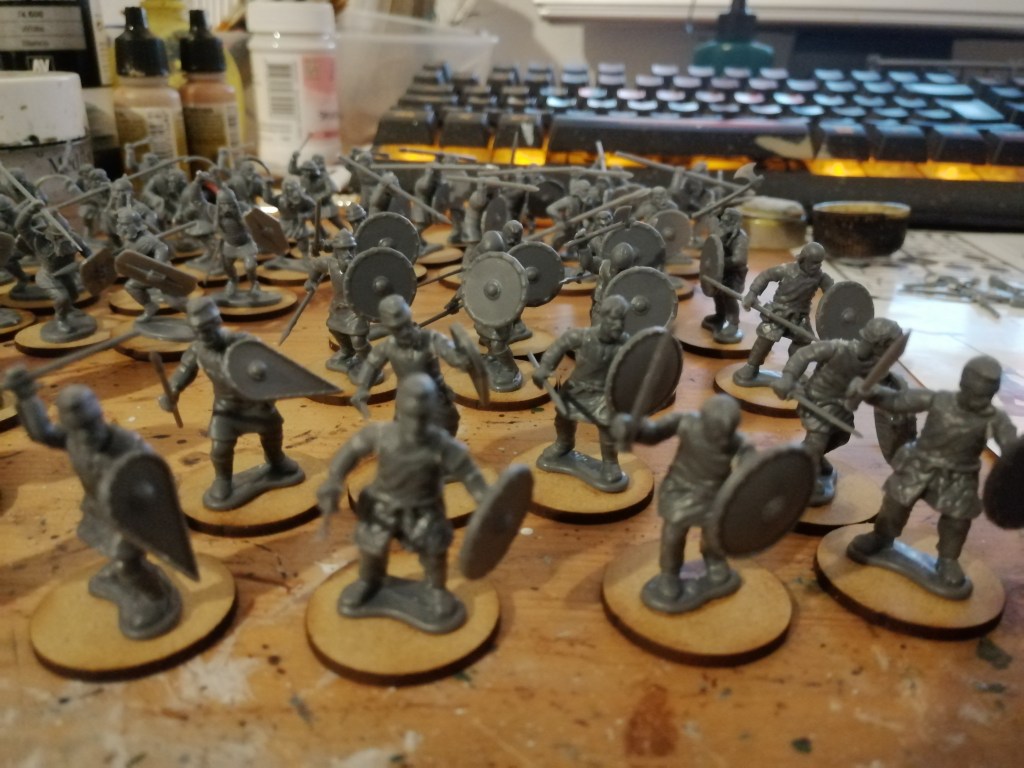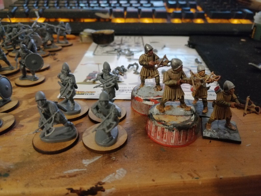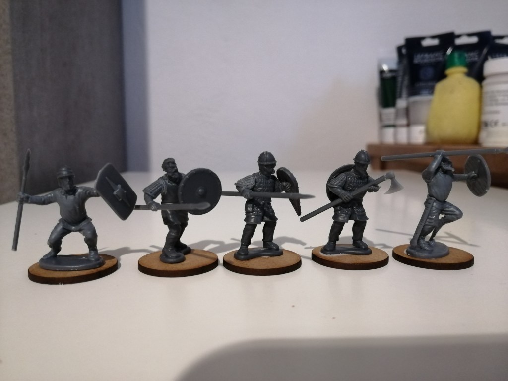 As you can see, fairly lot of stuff done, and they fit together scale-wise pretty well. If anything, the only visible thing that does not fit all to well is using the Celts for kit-bashes. The heads they have are really too small ( they only fit the dark age warriors without green stuffing the neck area).