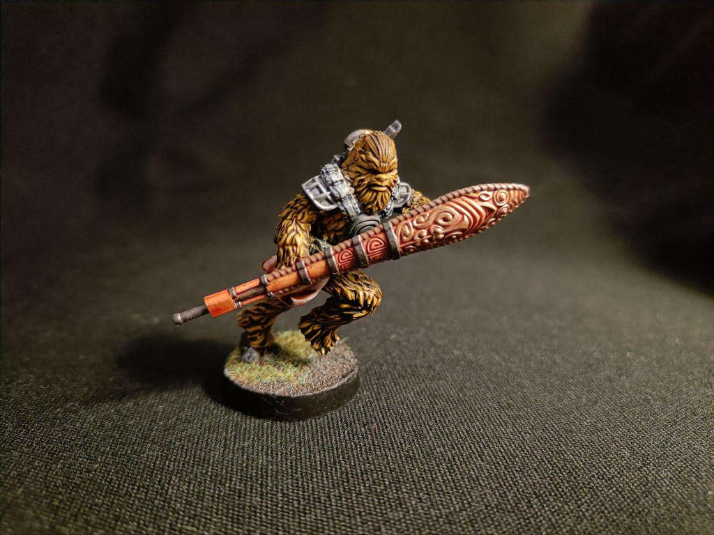 Next up The bowcaster and long gun. I have been skeptic about Army painter gravelord grey, as I find it a bit .. meh! But now I have found a use for it, Grey fur is awesome with it!