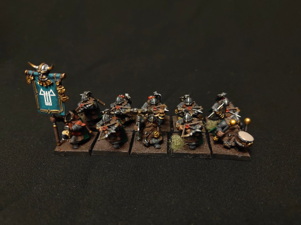 2 units of 8 with full command, one musican is from their own set and the other from the dwarf warrior sprue. This gives a little bit of variation in the unit.
