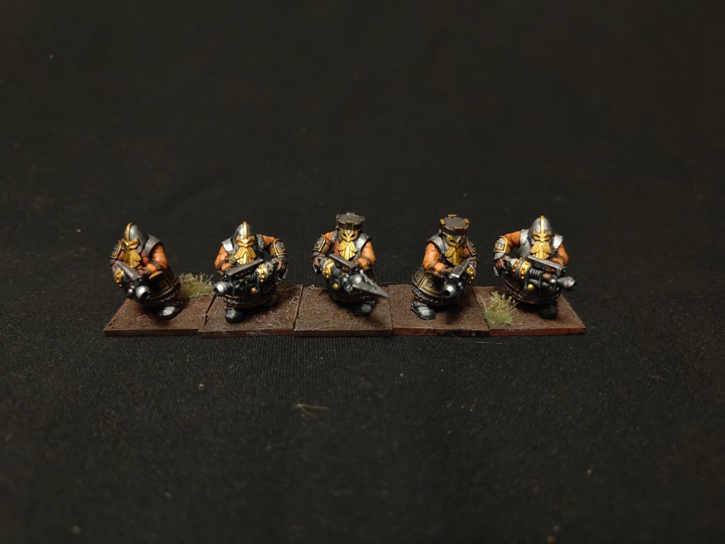 The additional thane is for splitting the warriors in two groups if need be, or if I need another character on the board. The Engineer is Kitbashed together from a warrior body, quarreler pistol and mask and wrench from the cannon crew. Gives boons to the cannons and can be upgraded to multiple shots 2 and 2D3 hits on them. The Thane is considered to be a better platform for this with one better ballistic skill but is 10p more.