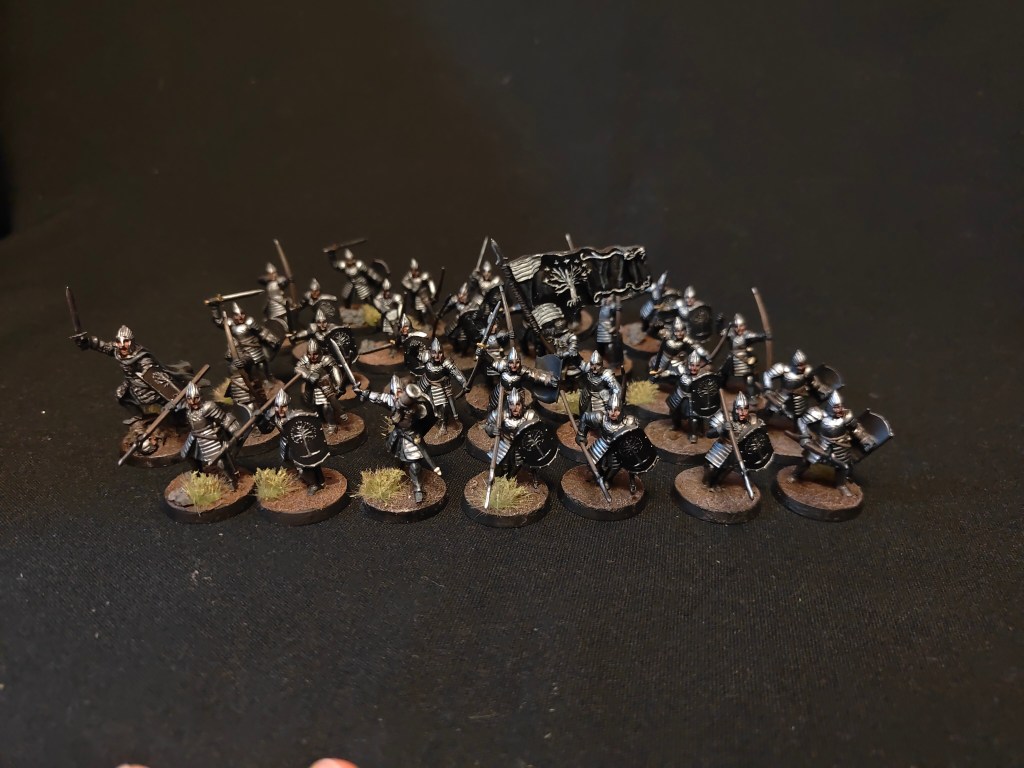 The meat and bone of a Gondor list, the humble warrior. Can be kitted with shields and either swords or spears. Forget about the bow, it’s not worth it. Really. There are better ways to spend the points than bow warriors. Has the Shieldwall special rule that makes them Defence 7 if in base-to-base with two other shield wielding units with the keyword, but this is mostly for one round, as the fights scatter you troops about and they lose contact with each-other.
